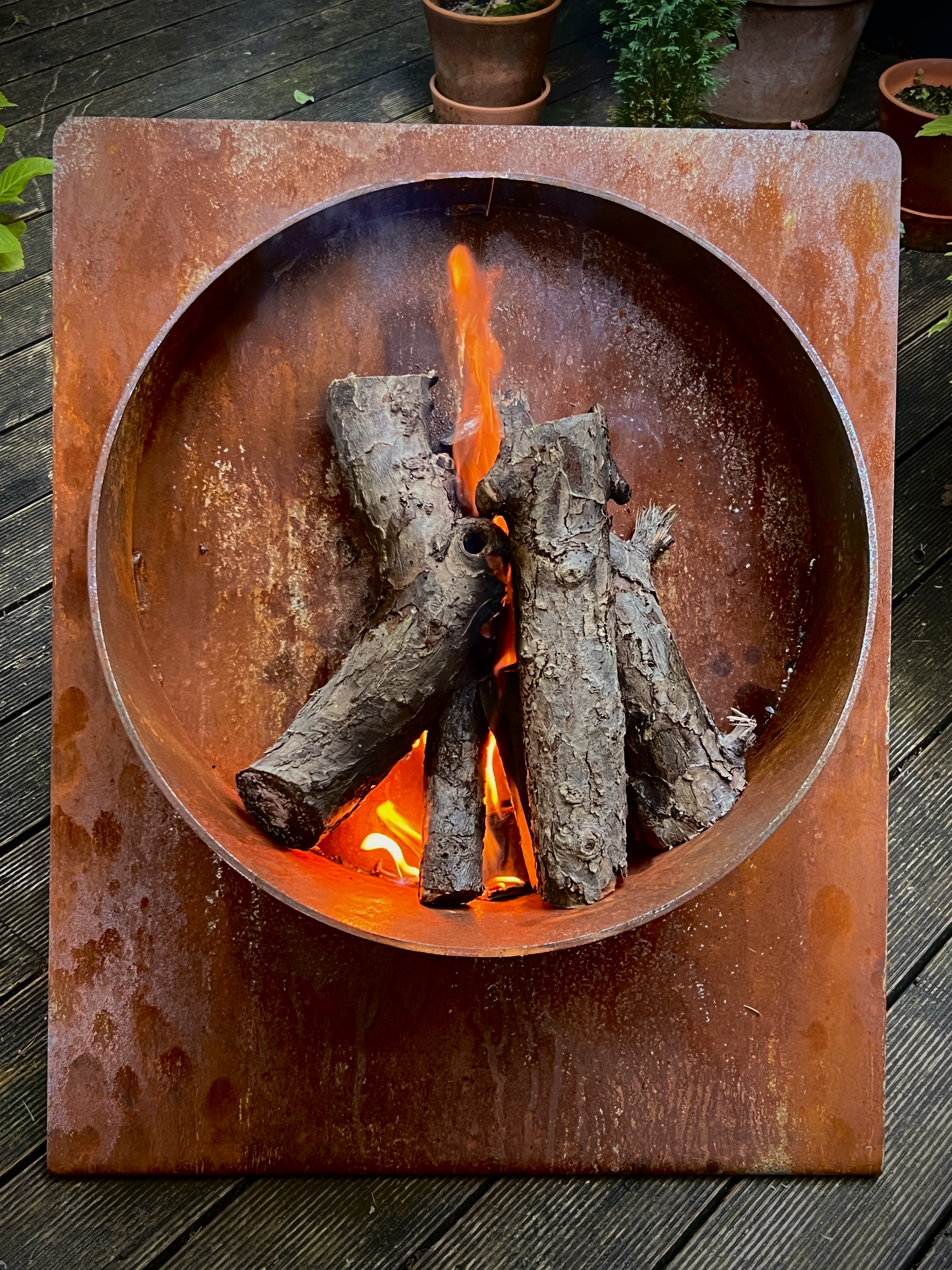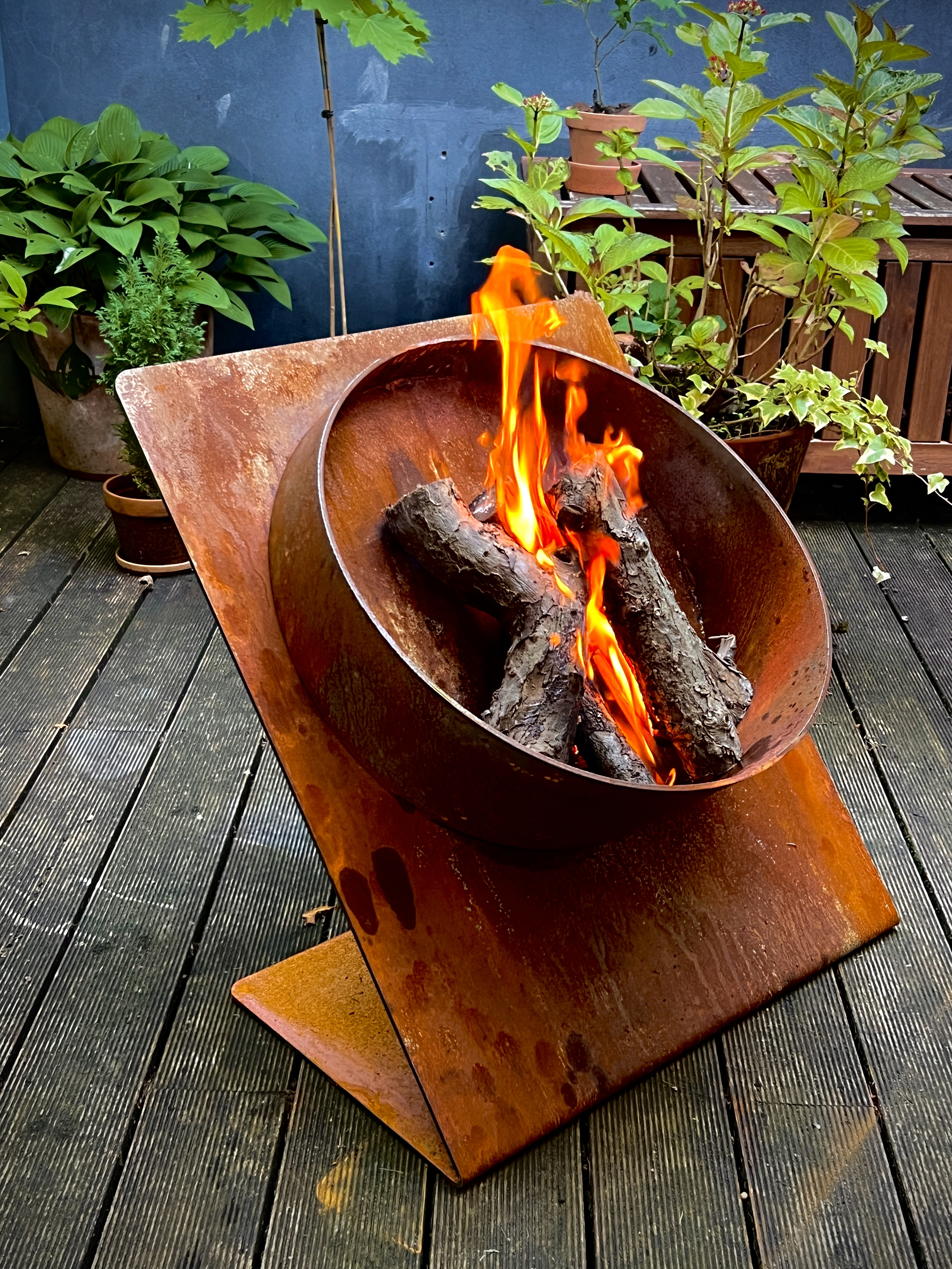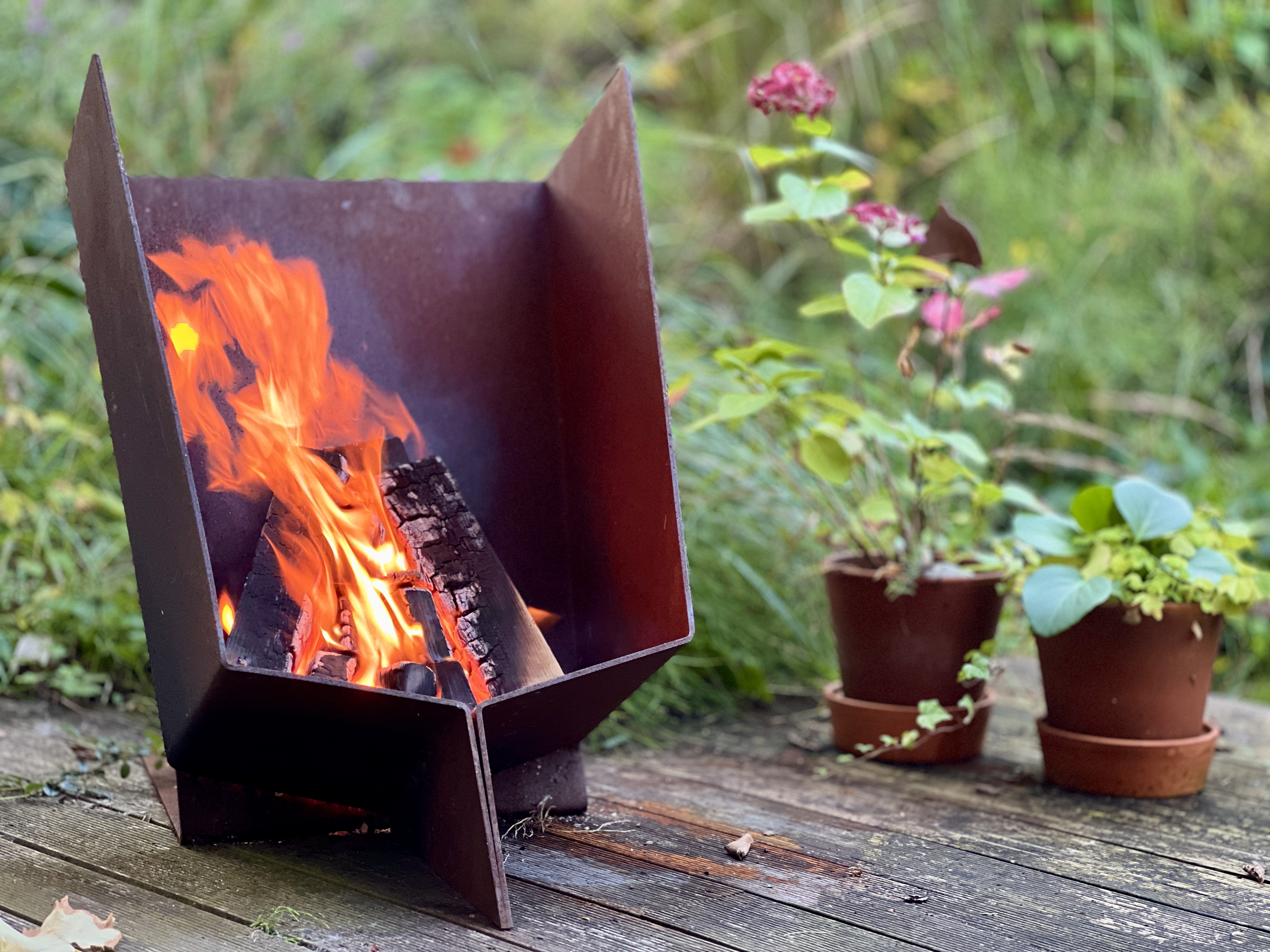 De to bålfade og redekassen, alle udført i Cortén, er også prototyper der snart kommer til salg.