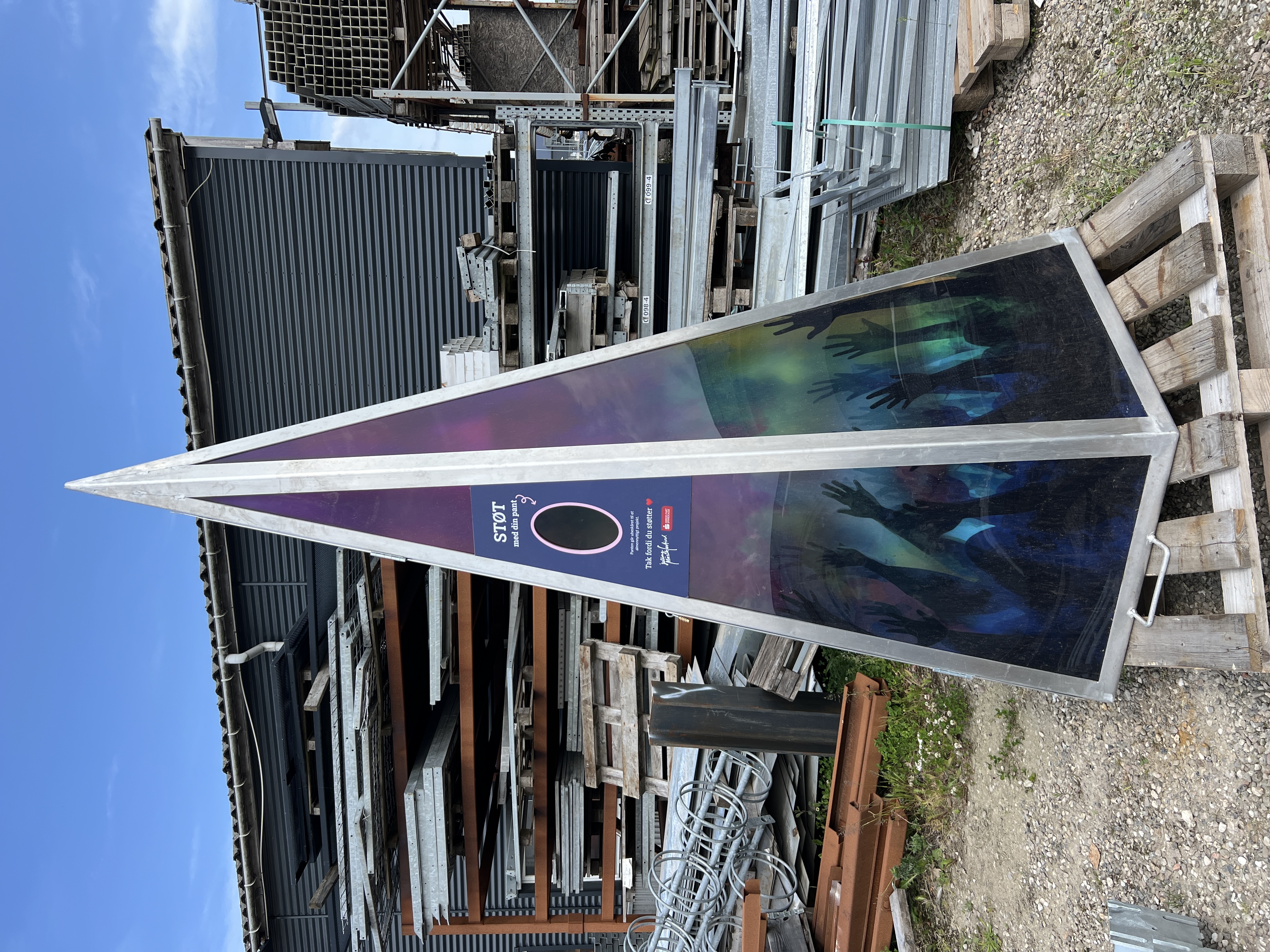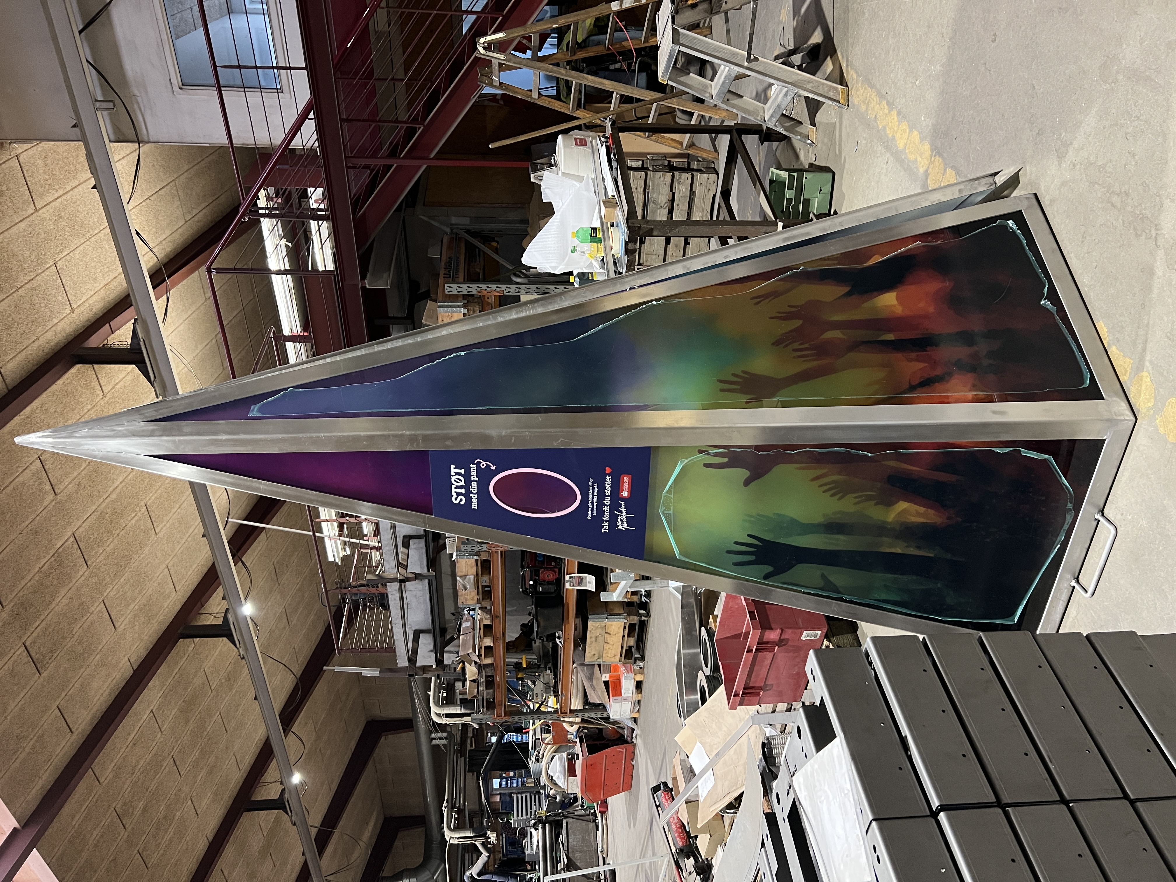 Keglen er egentlig en meget anderledes “pantboks”, udviklet for Middelfart Sparekasse og brugt ved musikfestivaler. Den er udstyret med særlige LED-lys, der reagerer på lyd – så den lyser op indefra, når musikken spiller. Alt sammen drevet af en kæmpe powerbank, så man slipper for løse ledninger og potentielle faldfælder.