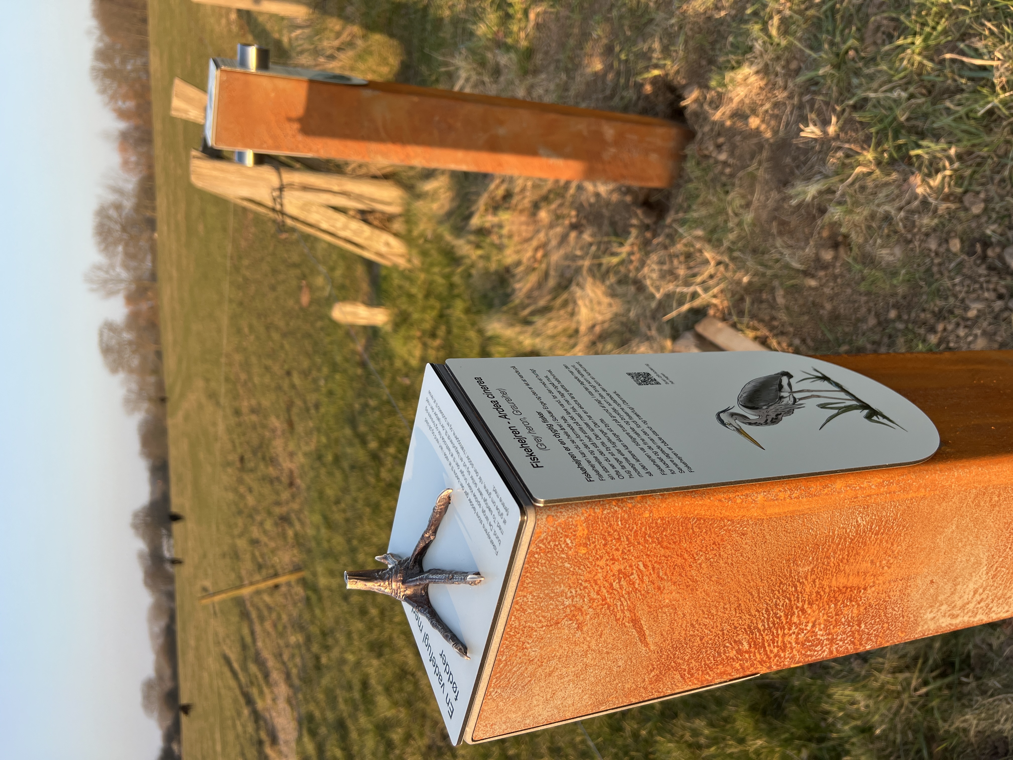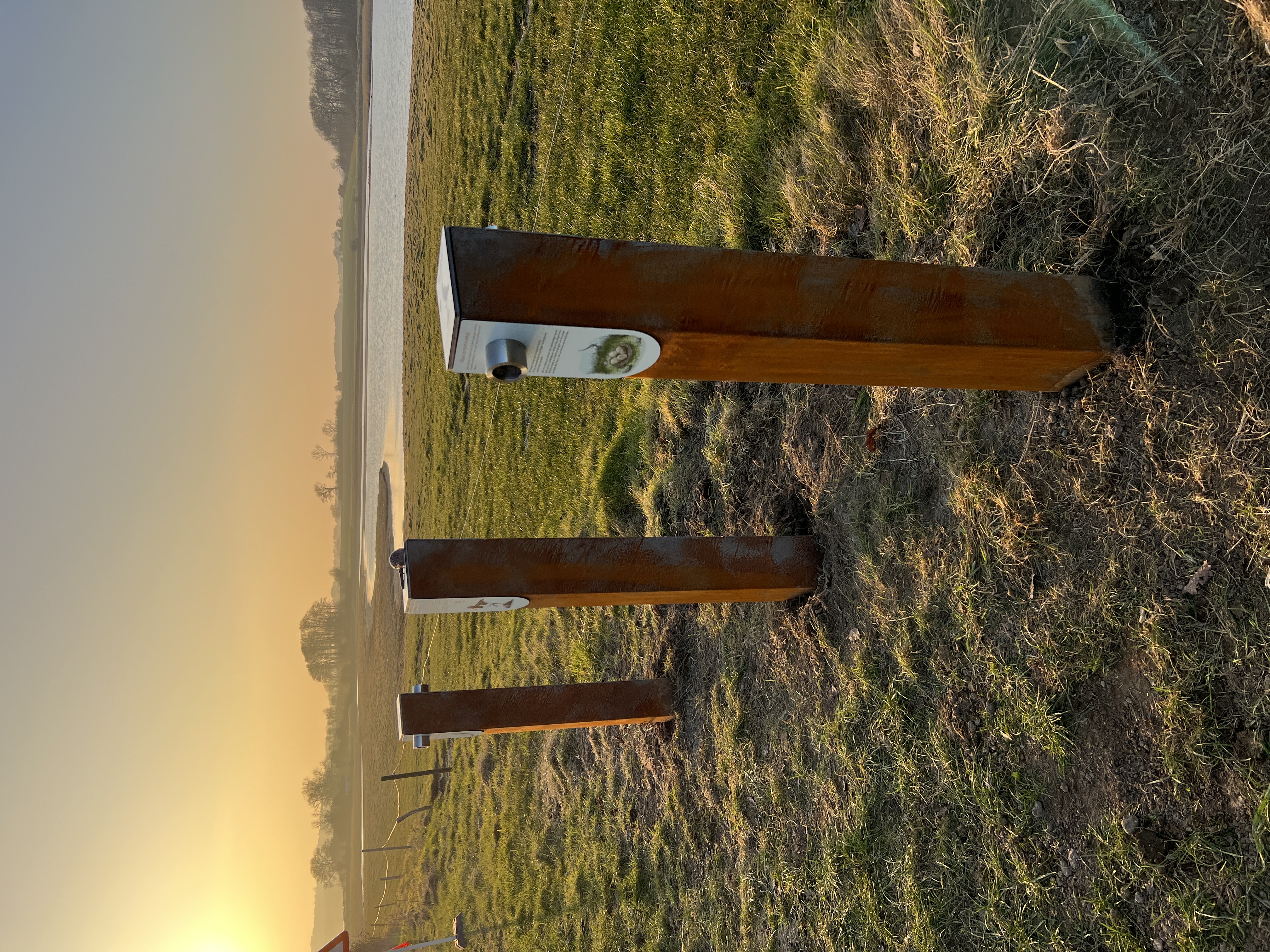 Mit forslag blev en kombination af pæle, udskårne fugle og interaktive formidlingsbokse – alt udført i corténstål. Et fantastisk materiale, der næsten er uforgængeligt, og som med sin varme, rustfarvede overflade falder naturligt ind i landskabet uden at “larme”.