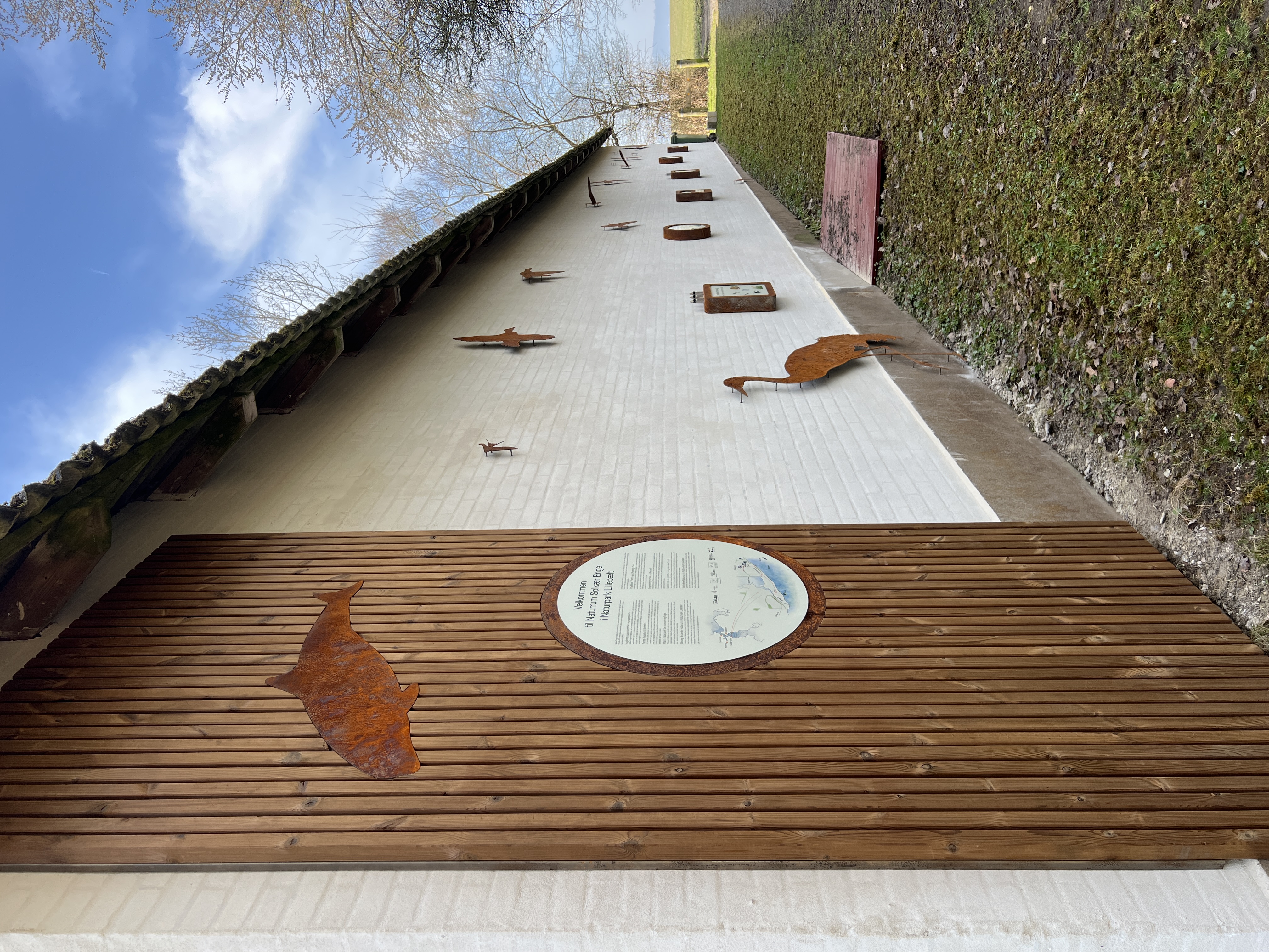 De pæle, der ikke har bronzeafstøbninger, har i stedet fået indbyggede “kikkerter”. Ser man gennem dem, får man fx øje på en flok gæs der flyver i formation – eller en skarv, der siddende på en pæl, tørrer sine vinger.